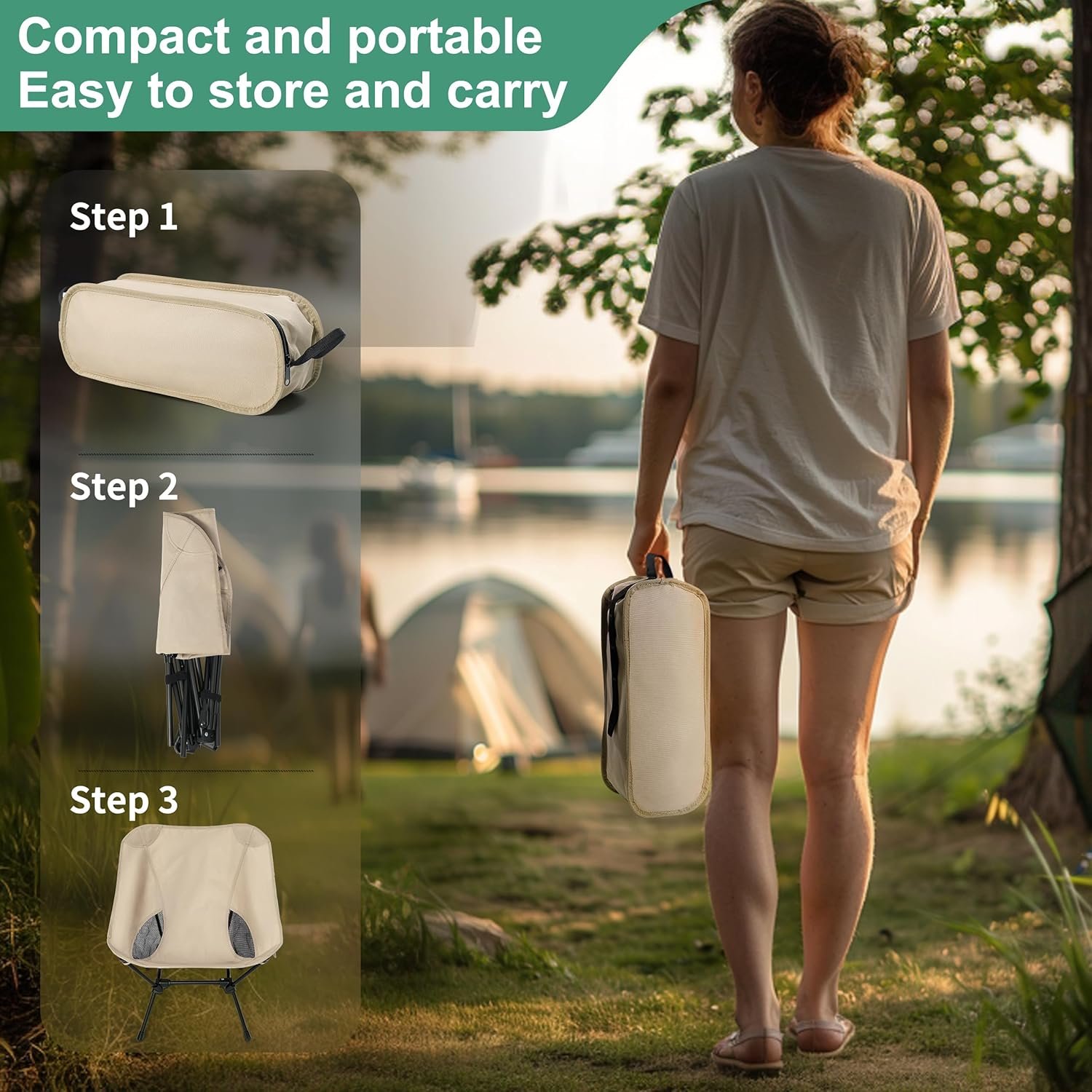 - SPACE-SAVING MARVEL: Our portable camping chair fold compactly to a mere 14.1 * 5.4 inches. Our outdoor chair have freely controllable height switching and maximum expanded dimensions are 21.5 * 21. 5* 25.6 inches